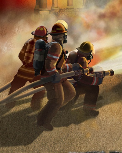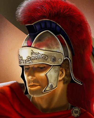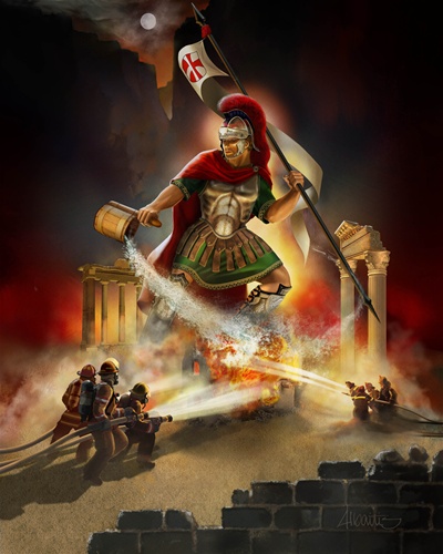 This print captures the spirit of our patron saint Captain St. Florian, an incredible individual who could not be broken. In addition to being a proud wearer of the Roman Fire Brigade “Green Tunic”, the future St. Florian also proudly wore his Christian faith openly and refused orders to prosecute Christians simply for their beliefs.